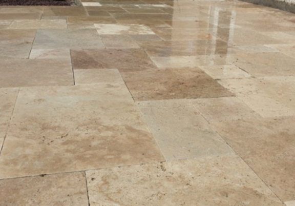Le travertin apporte une authenticité inégalée aux espaces extérieurs. Pour ce projet à Rouen, nous avons réalisé un dallage complet en pierre naturelle, offrant un aspect à la fois rustique et élégant.